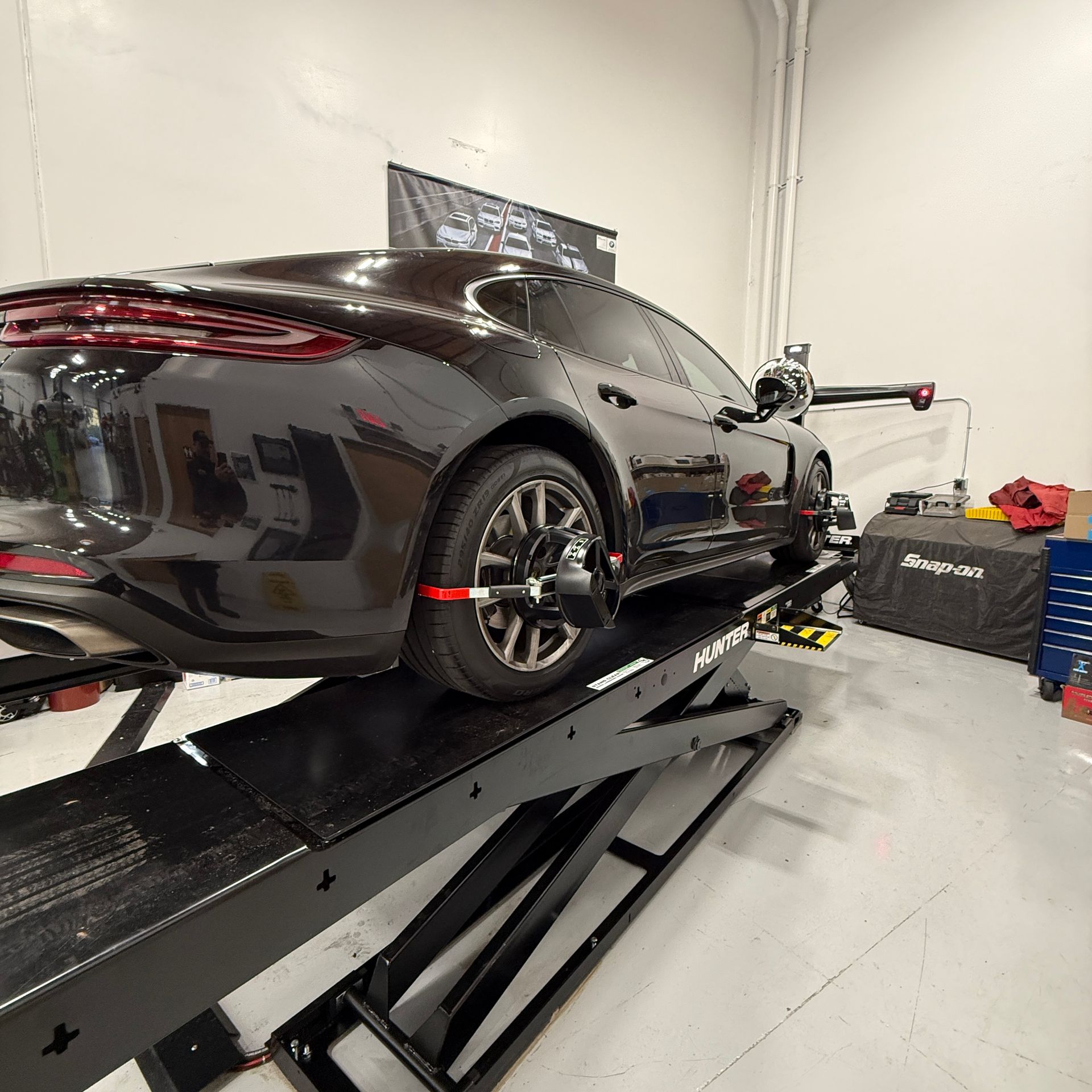 We’ve invested in a new alignment rack and a Hunter Hawkeye Elite system, so the angles can be set precisely to match how German suspensions are designed to drive.